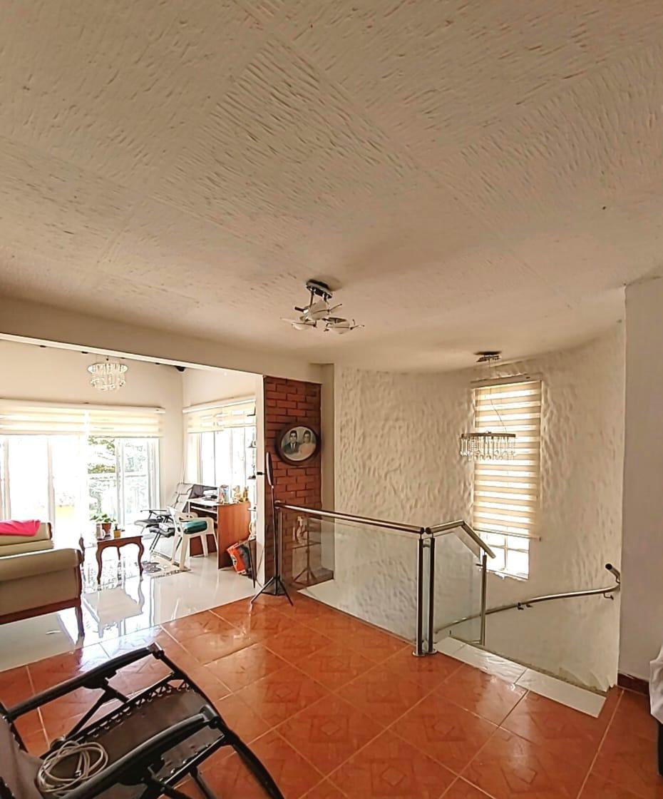 Cuarto de Sanalejo Zona de lavandería Habitación servicio Baño social BBQ Patio en granito Con balaustres de concreto arquitectónico decorativo con flores escalera en peldaños en cerámica y acabados en granito que terminan en el salón de televisión Sala de star Gran balcón en L en vidrio, acero y porcelanato Habitación principal de 45m Walking closet en pino Baño privado con tina